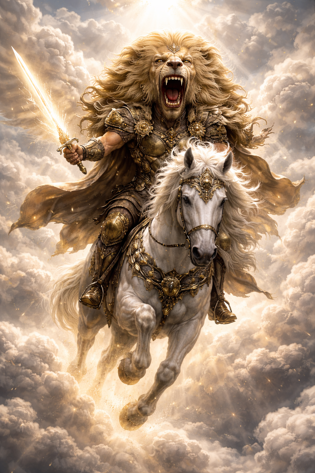 I saw Jesus with the head of a lion (Lion of the tribe of Judah). He was on His white horse and had a sword coming out of His mouth. He was headed down to earth fast and furious.